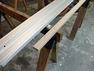 I ripped a 3/4 by 1 1/2 piece of oak in half to make two support rails for the shelf boards.