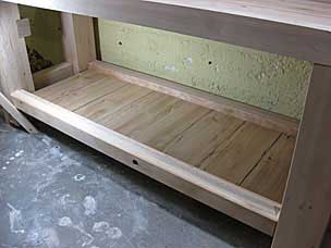 I predrilled and countersunk for screws, then attached the support rails to the lower stretchers.